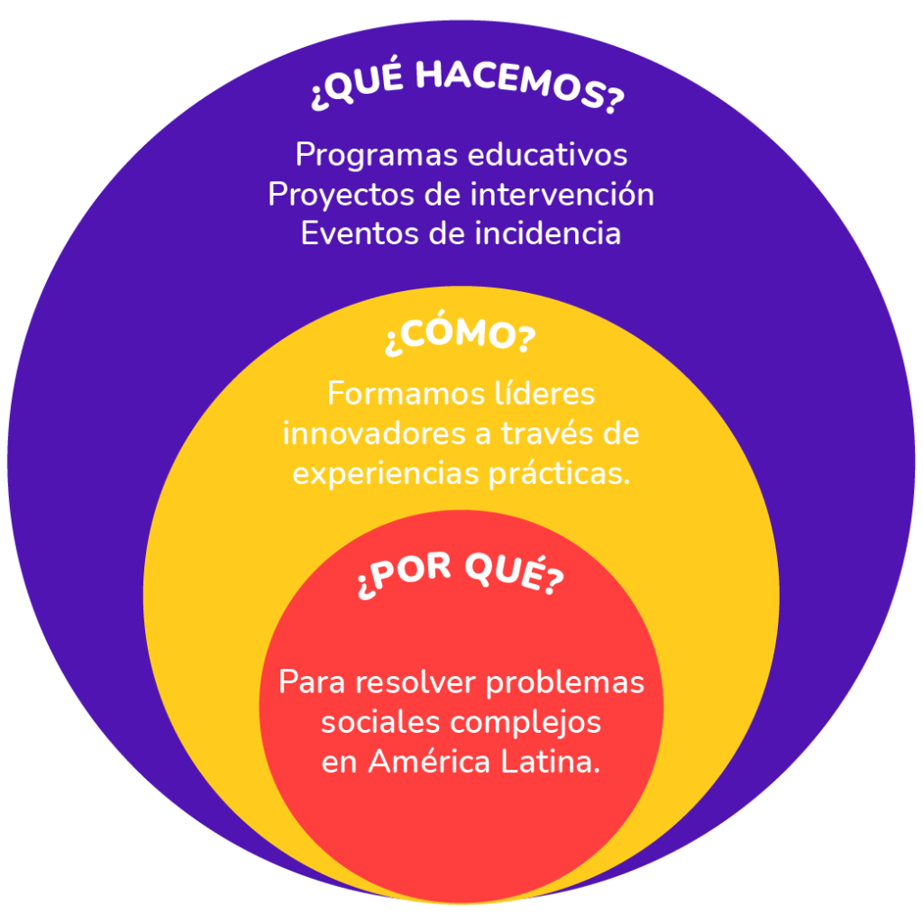 Con el fin de dar solución a la multiplicidad de problemas sociales que existen en América Latina, nuestra apuesta es crear espacios donde las personas que aspiran a convertirse en agentes de cambio puedan desarrollar su liderazgo.